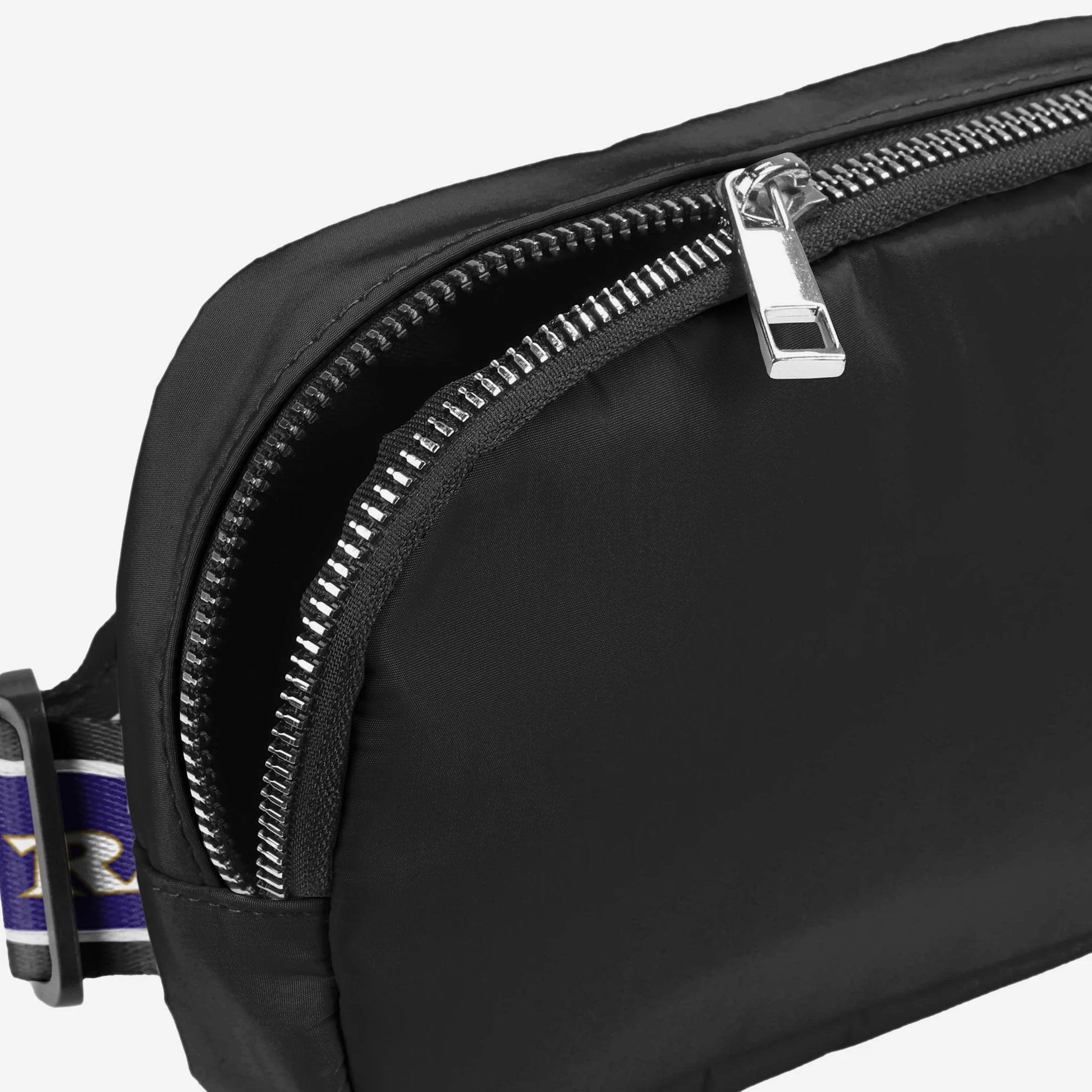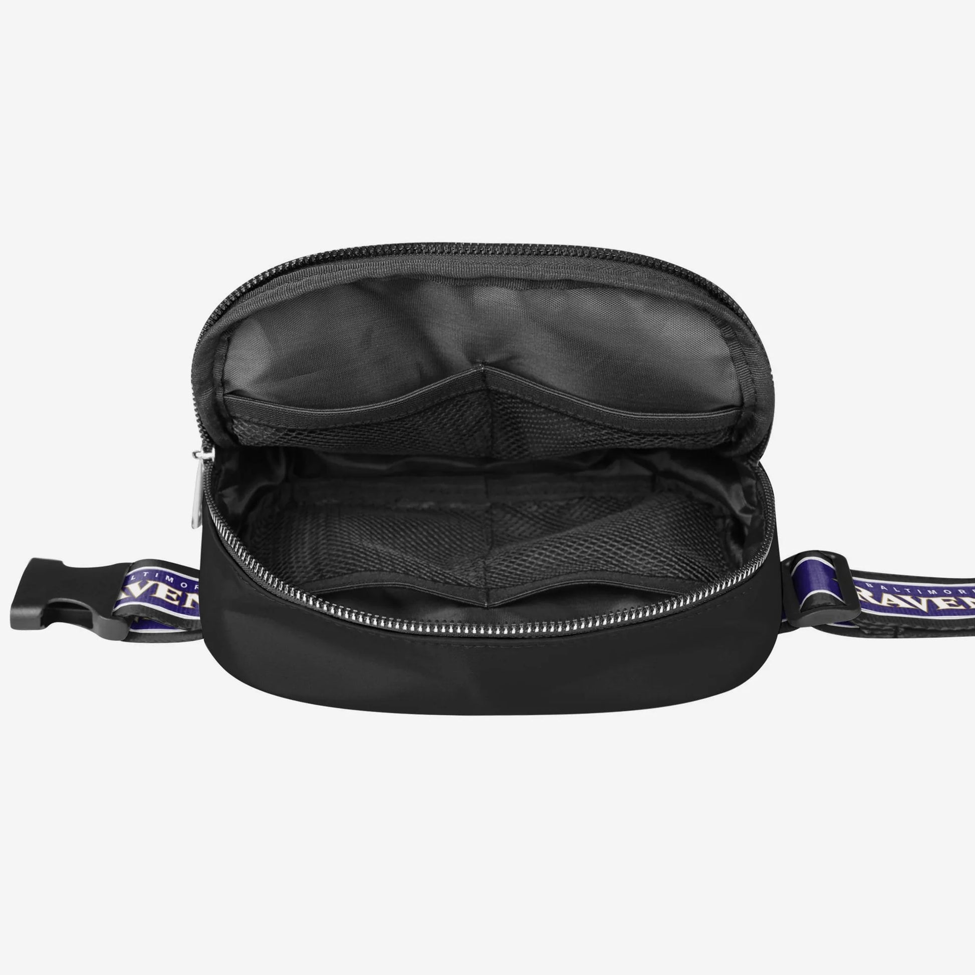 Keys. Wallet. Team spirit. Yep, you've got everything you need right here in this Baltimore Ravens Team Wordmark Crossbody Belt Bag, whether you're running some errands or running things at the tailgate.